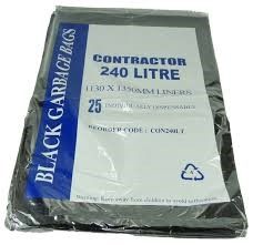 GARBAGE BAG CONTRACTOR BLACK 240L 100/CTN