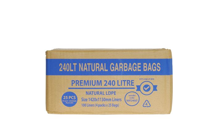 GARBAGE BAG NATURAL LDPE 240L 100/CTN